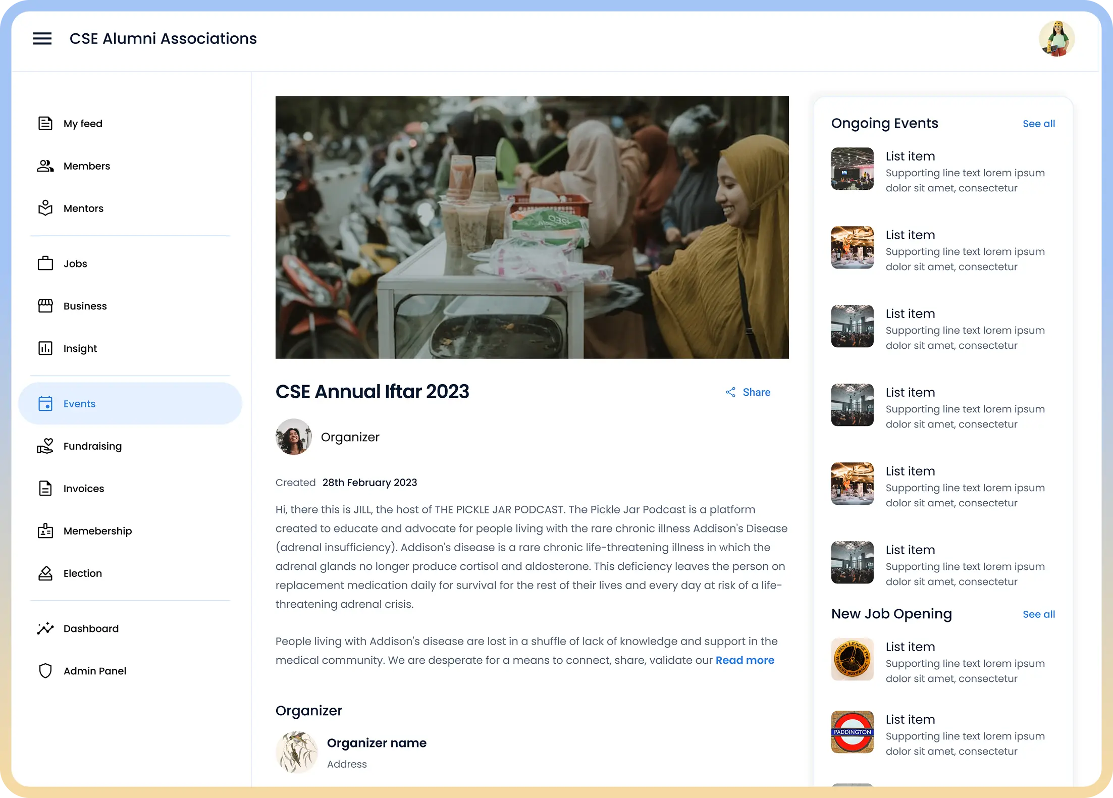 Want to promote your events easily? With Gradnet, you can create dedicated event pages to promote your events to all alumni.