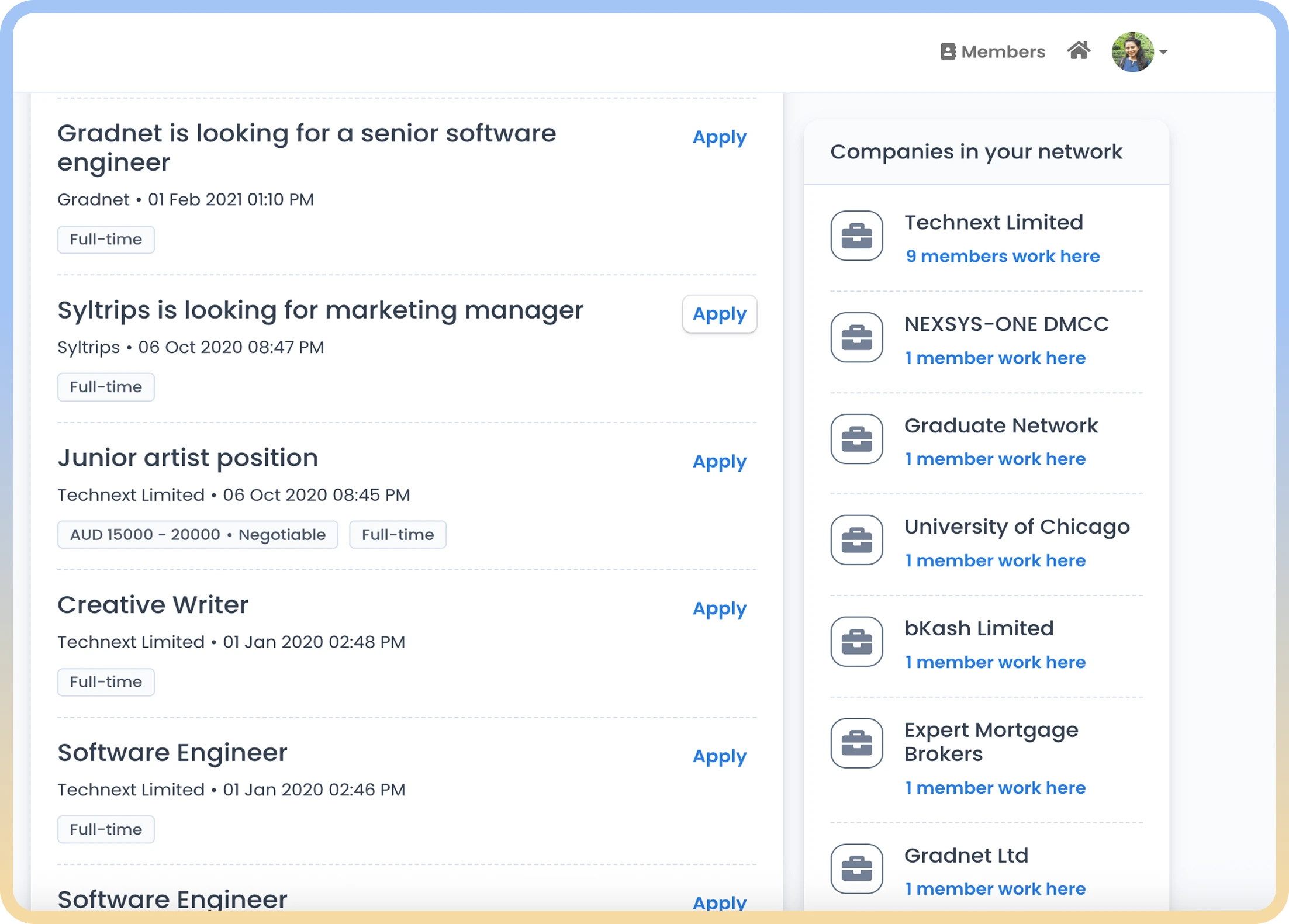 Gradnet allows alumni to search for jobs, access career advice, and connect with potential employers. Alumni associations and educational institutions can use Gradnet to build relationships with potential employers and help their graduates find the career paths they are looking for.