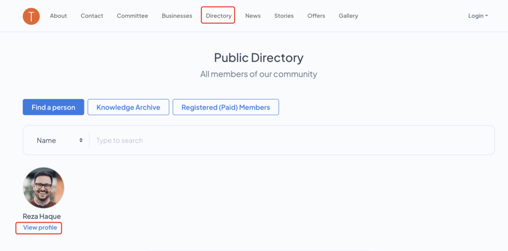 Step 4 – From the “Directory” tab, members can see general information without login-